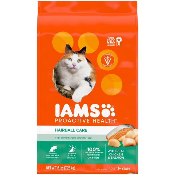 Iams Proactive Health Adult Hairball Care Protein Rich Hairball Control Dry Cat Food With Chicken And Salmon 16 Lb Bag Walmart Com